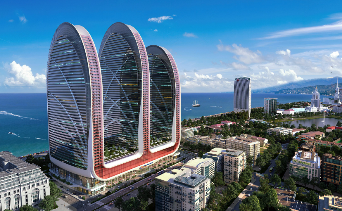 Alliance Centropolis is one of the most ambitious projects on Georgia’s Black Sea coast — combining lifestyle, business, and tourism into a single investment destination. The development includes three towers connected by a futuristic design and features: