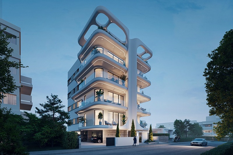 Midori Residences is a residential development by Tor Properties in the Neapolis district of Limassol. It comprises 8 apartments (spread over 4 floors), each with two bedrooms. There are also two penthouses with roof gardens and infinity pools. Units start from ≈ 87 m² of internal area; substantial verandas and covered parking/storage are included. It sits approximately 350-300 m from the beach. The building is energy class A, with features like underfloor heating, photovoltaic panels, central heating/air conditioning, and thermal insulation. Expected completion in Q4 2026.